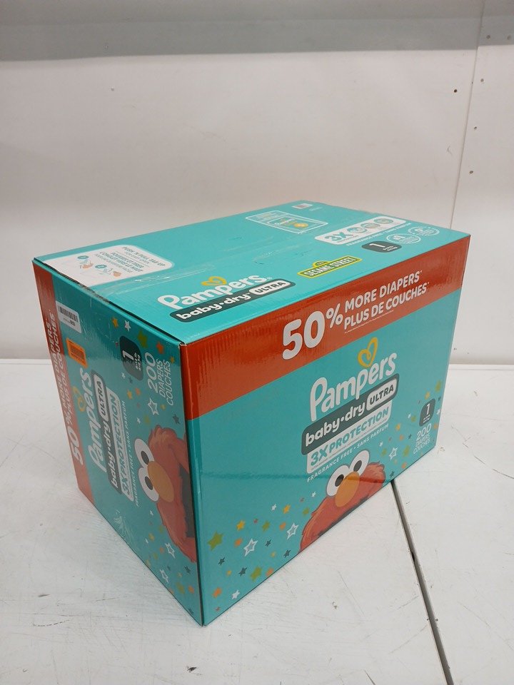 200PK Pampers baby dry ultra, Fragrance Free - Size 1 - Elmo