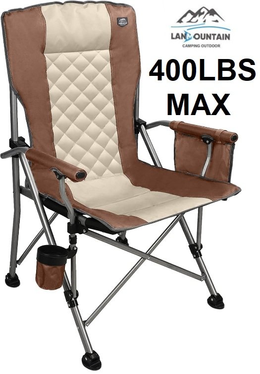 lanmountain Folding Padded Camping Chair with Hard Armrest and cup holder - 400lbs max - mocha (model: ls-110a-moca)
