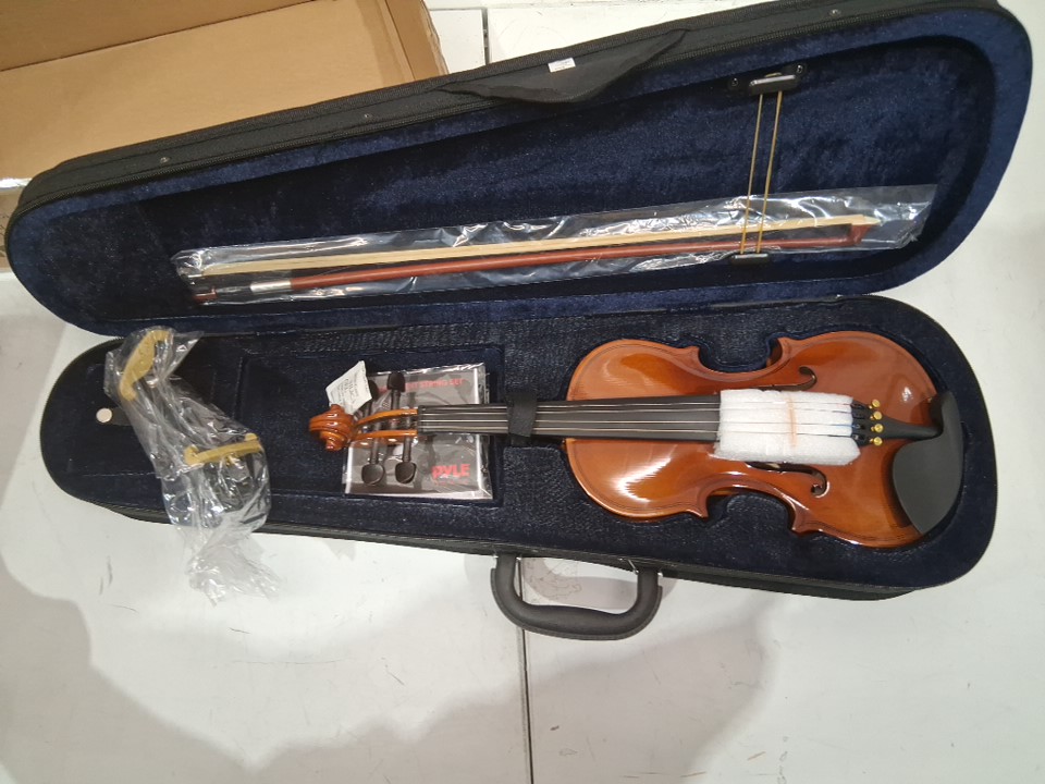 Pyle Plywood Violin Stringed Instrument with accessories- 1/4 size - maple - (Model: pgviln14)