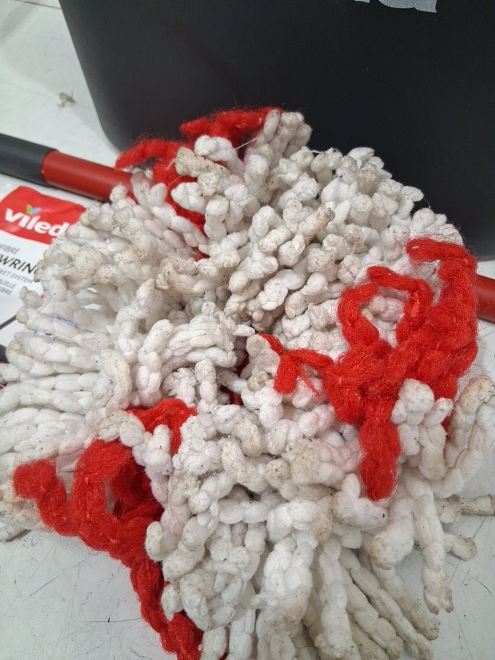 Please note that there is some wear/dirt on the mop head (see photos), is replaceable: https://www.amazon.ca/Pack-Spin-Refill-Base-Replacement/dp/B09QXPGW74/ref=asc_df_B09QXPGW74?mcid=317ada1a12da3b109f076872b9793431&tag=googleshopc0c-20&linkCode=df0&hvadid=706828956944&hvpos=&hvnetw=g&hvrand=993021844729444965&hvpone=&hvptwo=&hvqmt=&hvdev=c&hvdvcmdl=&hvlocint=&hvlocphy=9000801&hvtargid=pla-1648659994208&psc=1&hvocijid=993021844729444965-B09QXPGW74-&hvexpln=0&gad_source=1