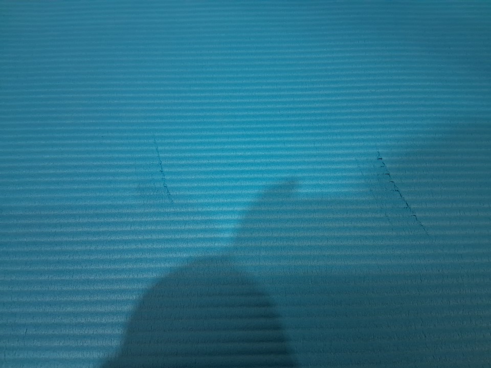 Mat has two minor cut marks on one side. ends of mat have also been slightly deformed, likely from shipping and handling (see photos)