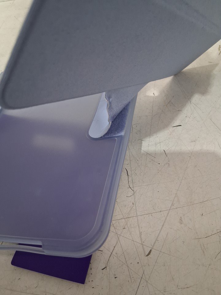 please note the connecting flap is distressed but it's still attached and functional. see photos.