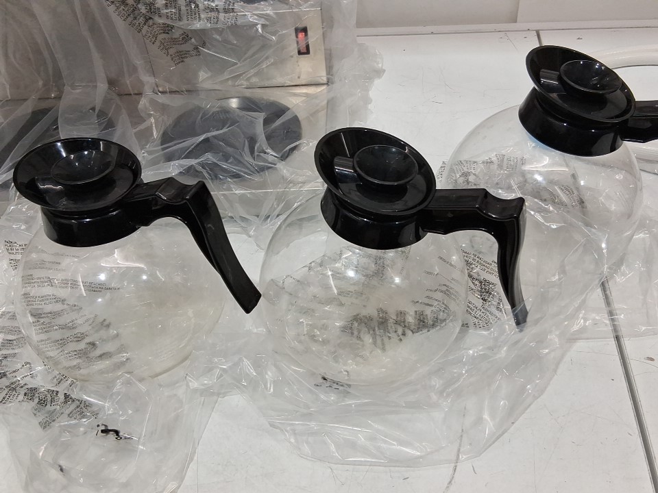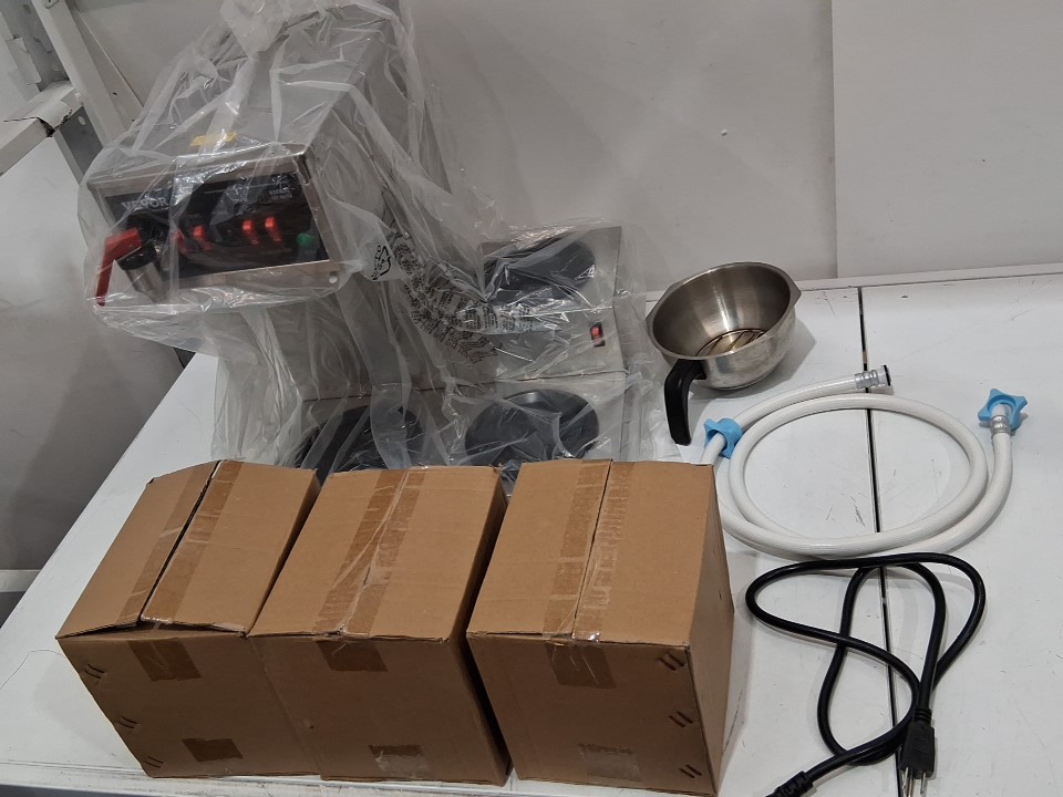 **Tested for power.** Item has minor residue markings on the warming plates and on the carafes, light coffee stains on the funnel, does not include filter baskets from previous gentle use, see photos.