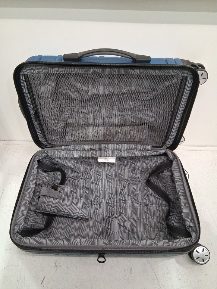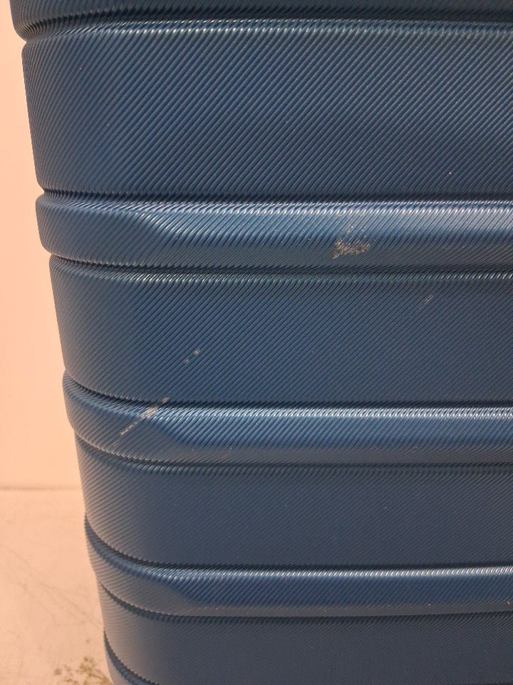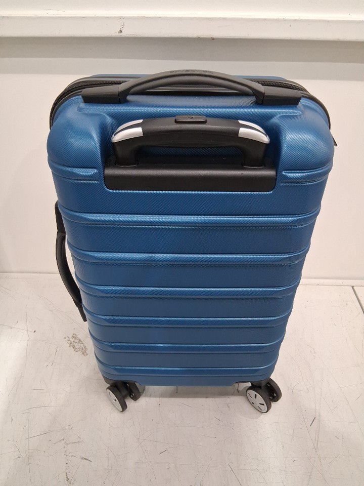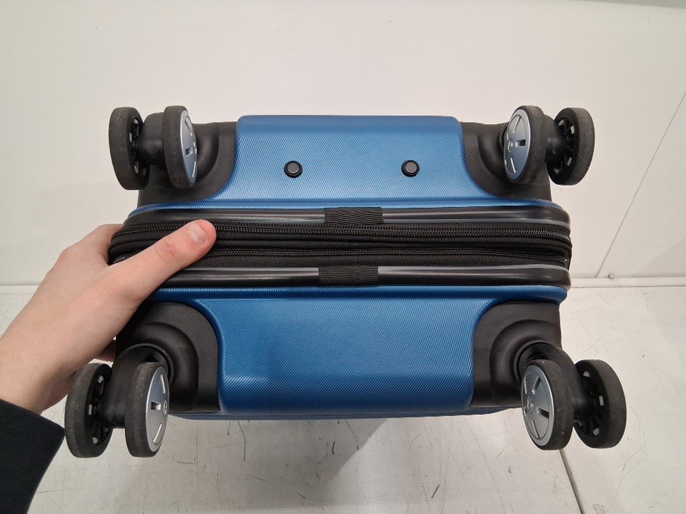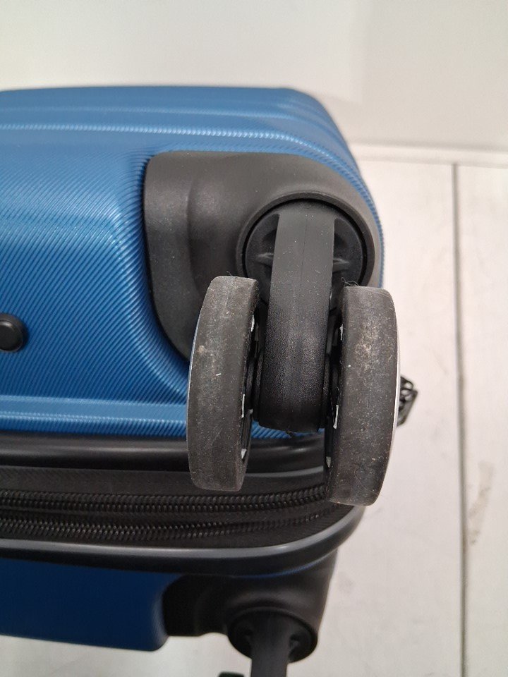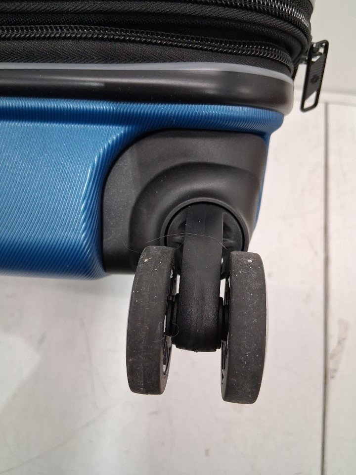 There are a couple of scuff marks on the front side of the suitcase, and the wheels also show previous signs of use. (Please see photos)