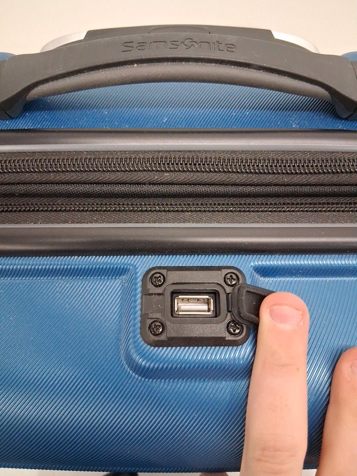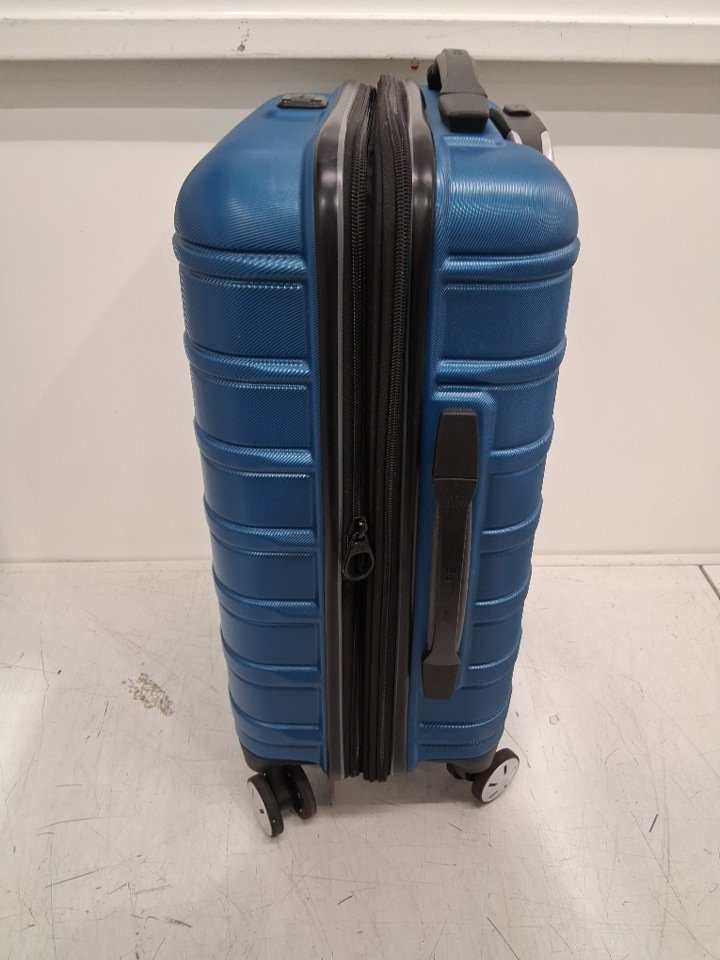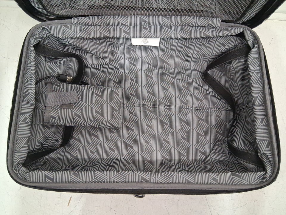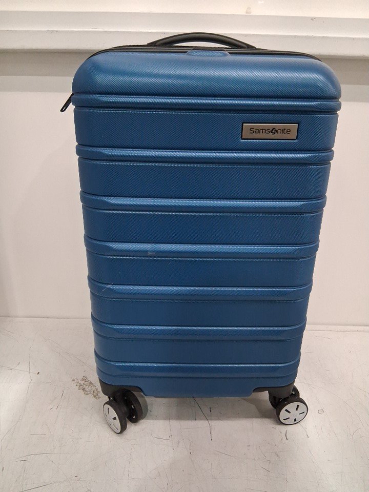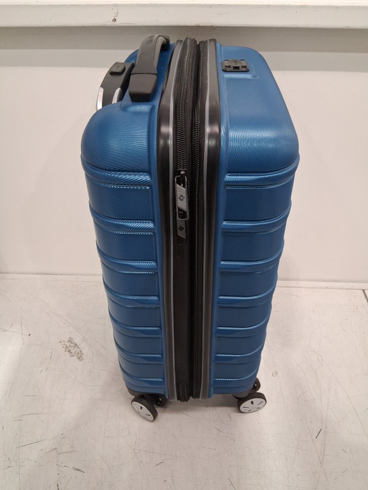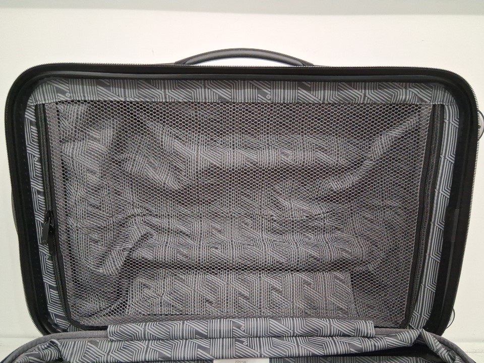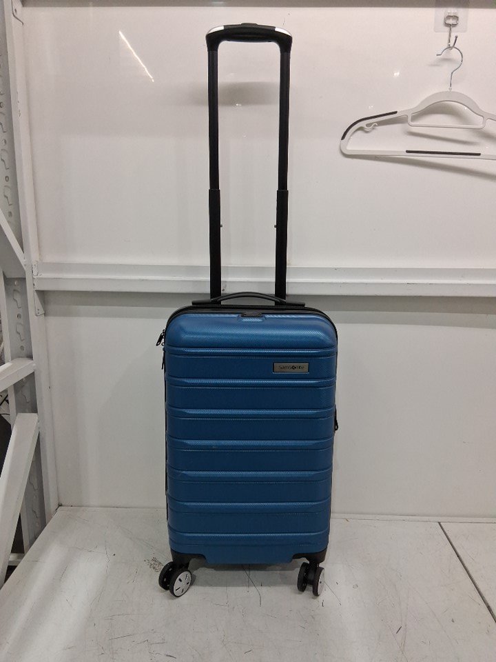 There are a couple of scuff marks on the front side of the suitcase, and the wheels also show previous signs of use. (Please see photos)