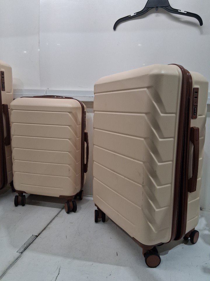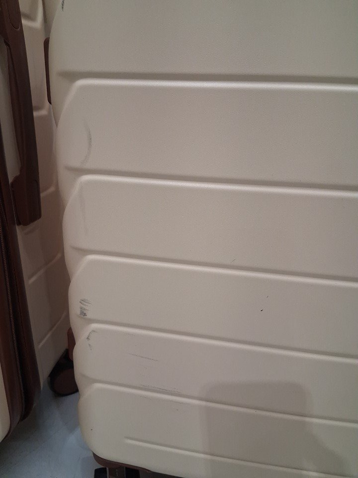 Each luggage piece has various degrees of surface scuffs and marks present back to front on ALL luggage pieces. Inside ALL luggage pieces there is some marks on the inside liners which included some creases in the liner fabric.