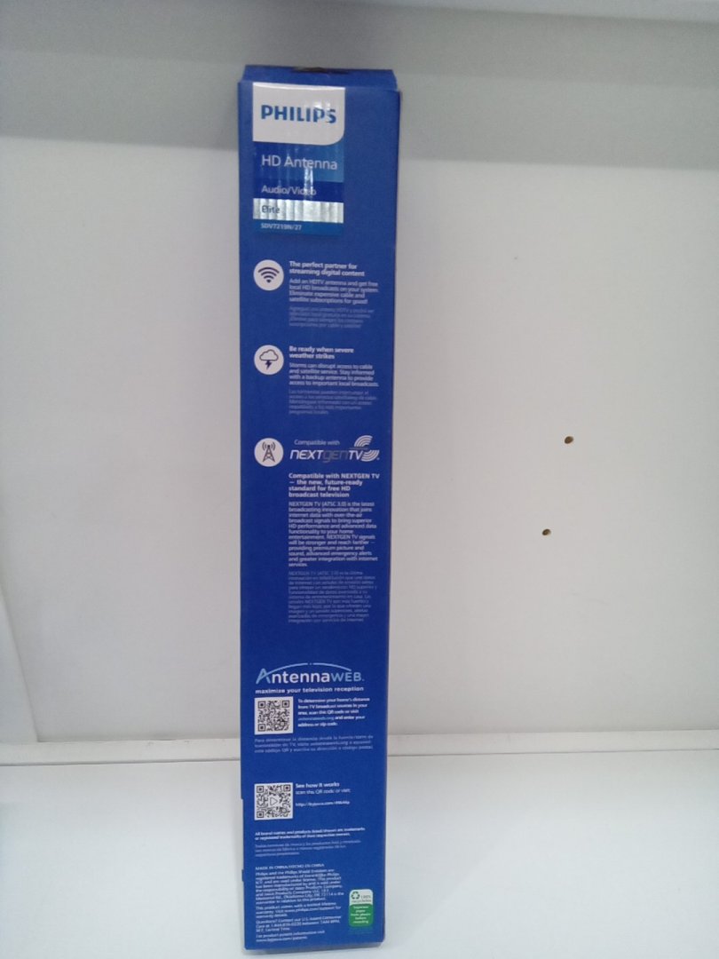 PHILIPS Hover HD Amplifed Indoor TV Antenna - 80KM RANGE - 19" X 4.7" X 2.5" - BLACK (MODEL: SDV7219N/27)