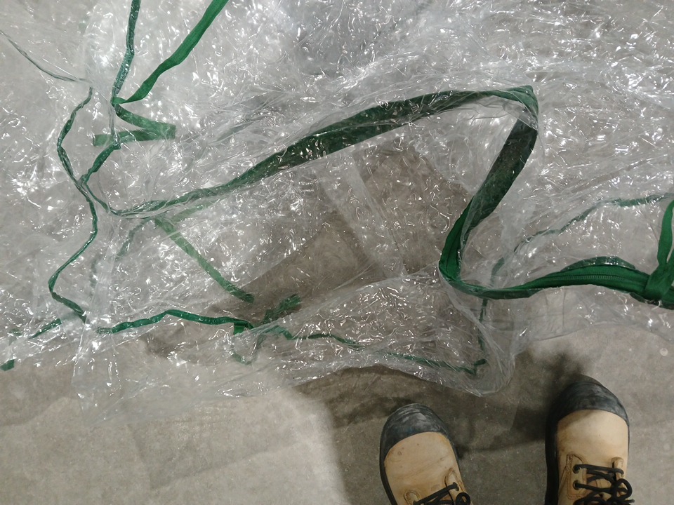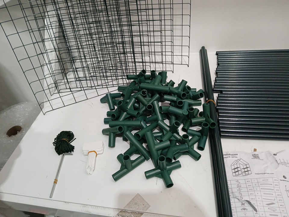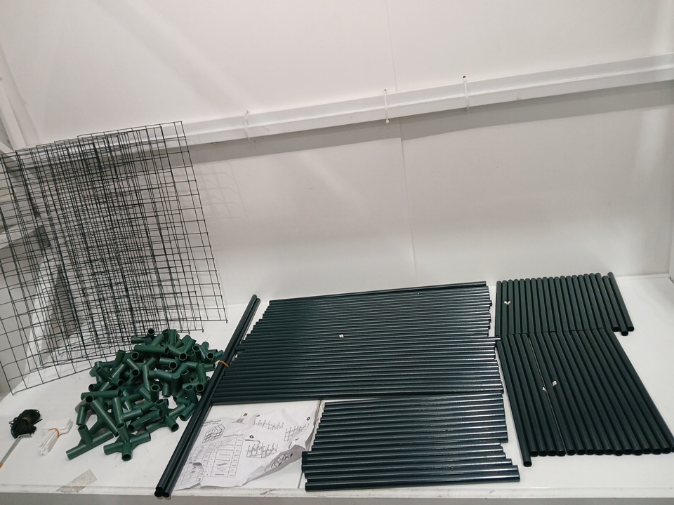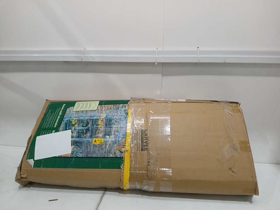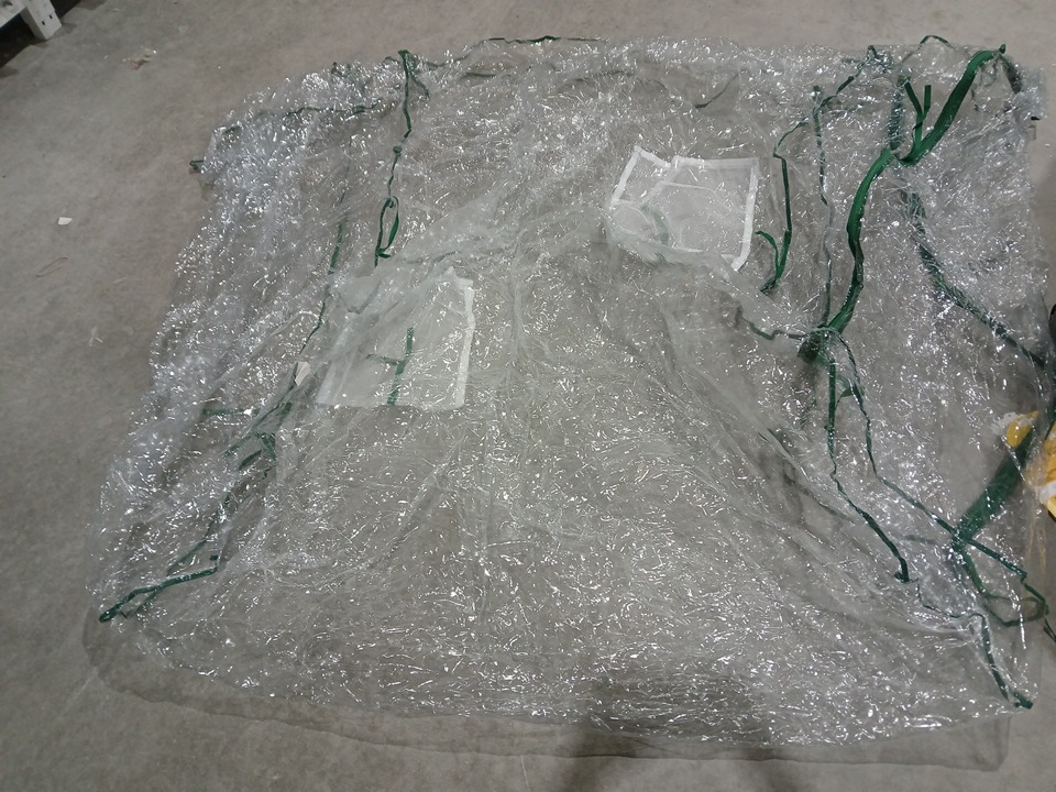 light signs of use overall on item, typical to use for the item type. all pieces required for assembly are included, additional generic hardware may be required, rip in the cover