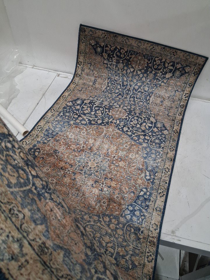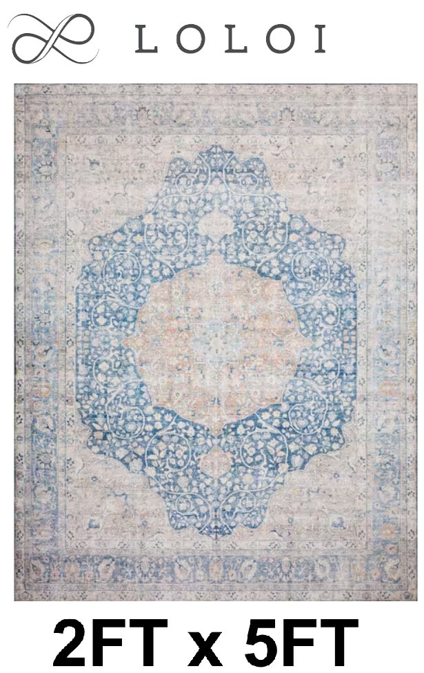 Loloi Distressed Bohemian Printed Area runner Rug - 2FT x 5FT - Blue/Tangerine (style: Laylay-07BBTG2050/LAY-07)