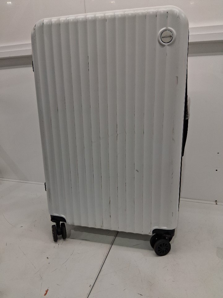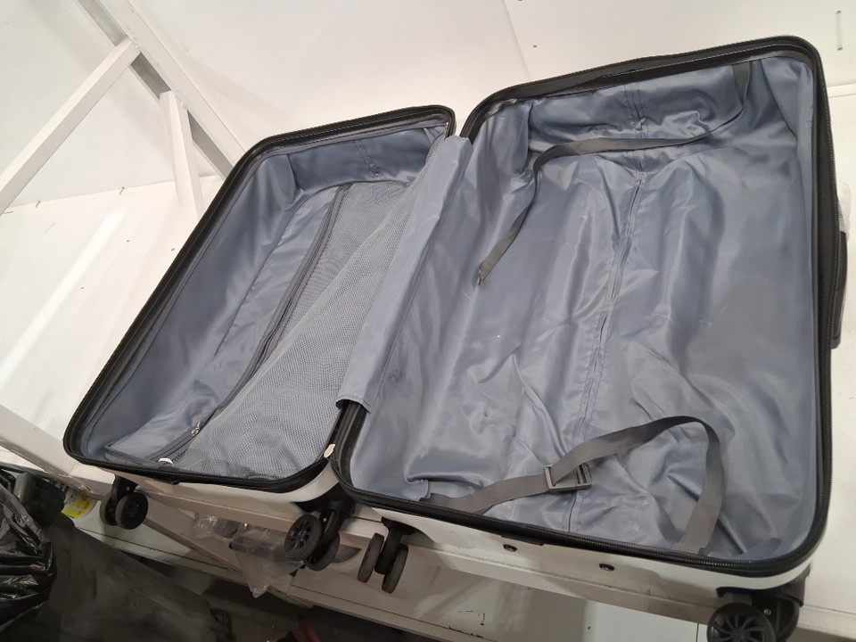 suitcase has been used previously. has lots of scratches and marks on the outside of the hardcase.