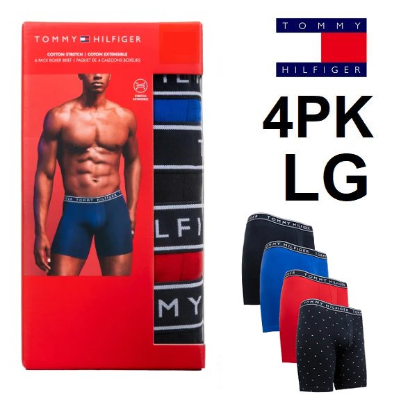 4PK Tommy Hilfiger Cotton Stretch Boxer Briefs - LARGE - Assorted Colours/Blue (Style: 3376002)