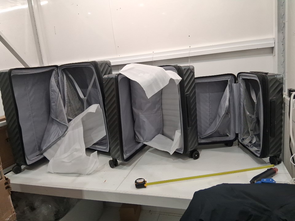 luggage has been used previously. the metal corner caps are scratched on all 3 suitcases.