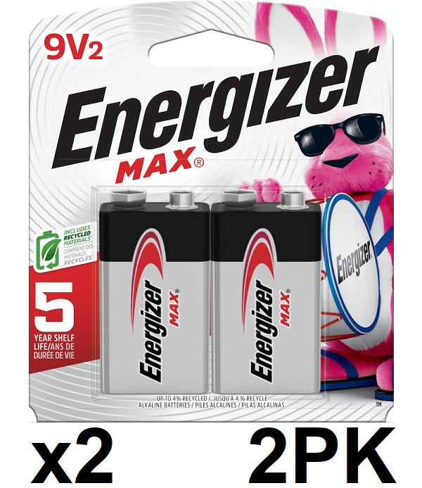2 (2PK) ENERGIZER MAX ALKALINE 9V BATTERIES