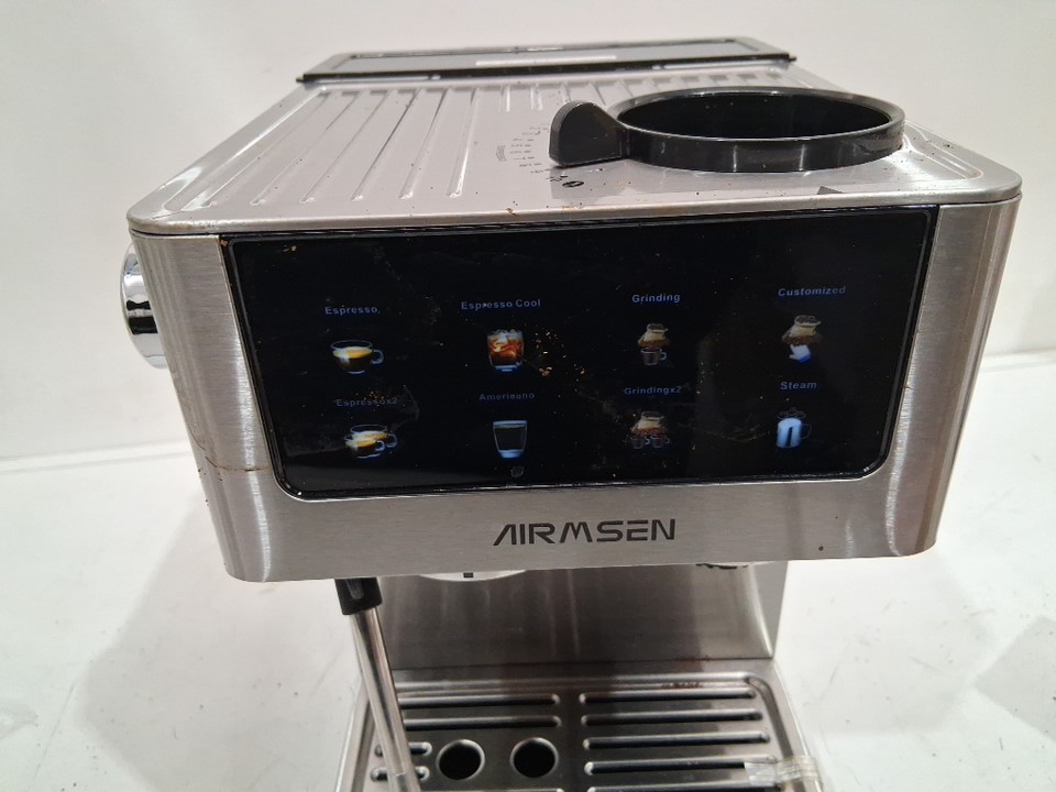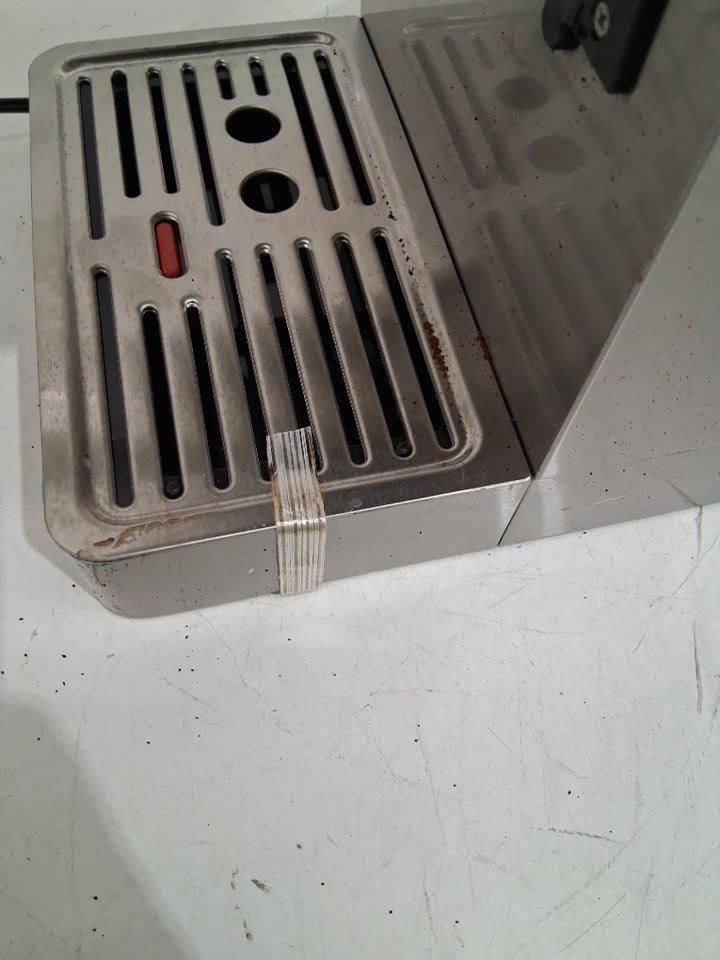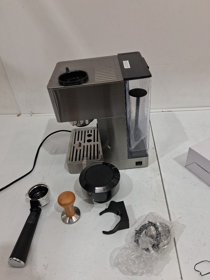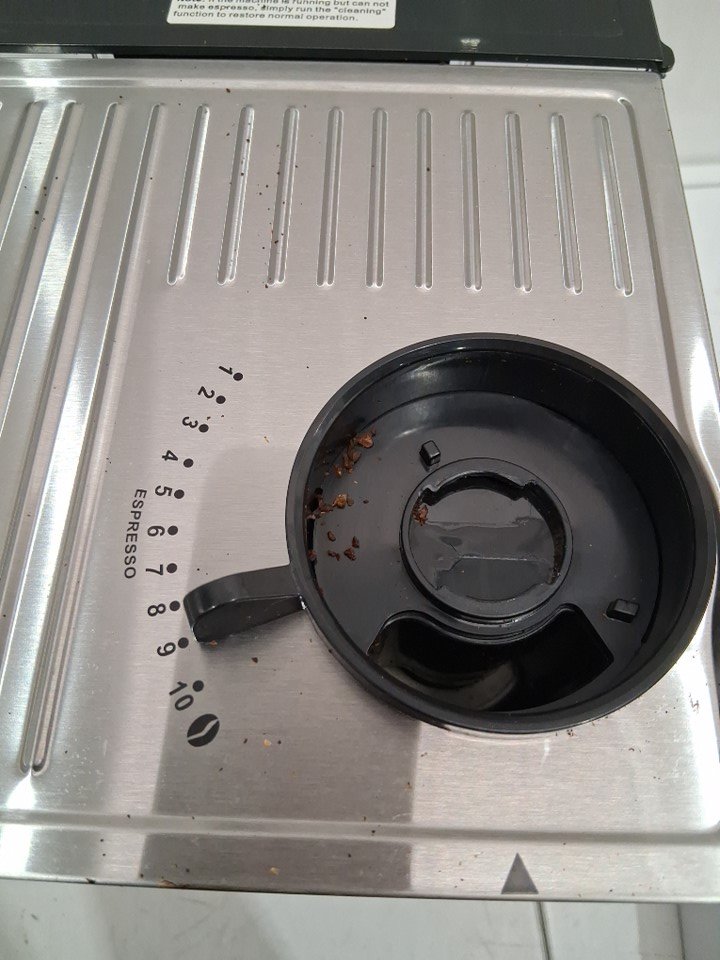 item tested for power there are some coffee grinds in the grinder, as well as some coffee marks on the bottom piece, portafilter and tamper (see photos)