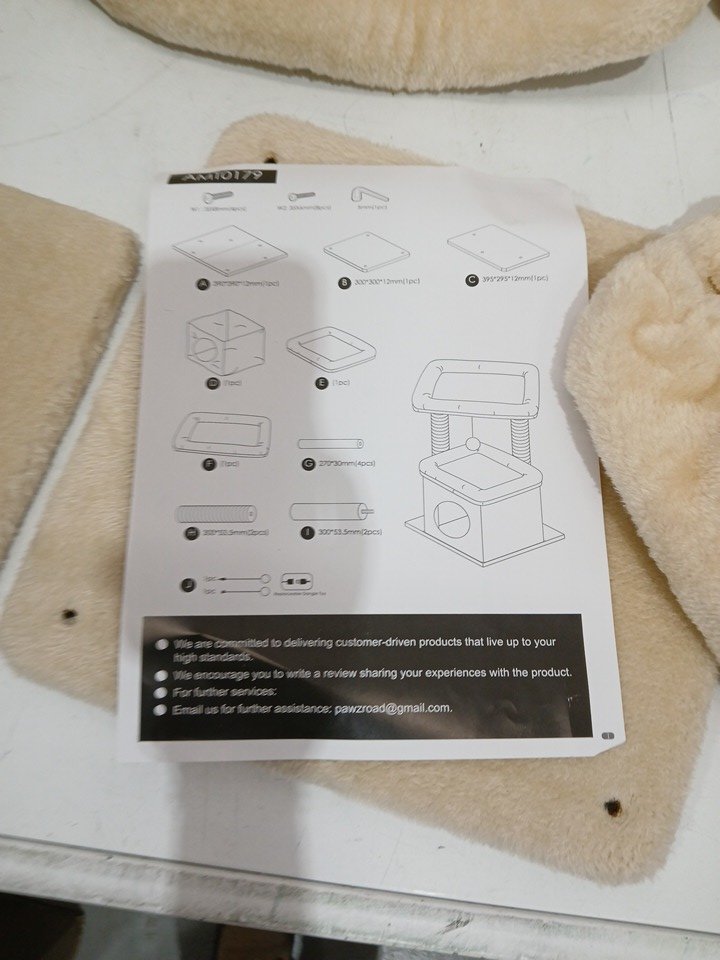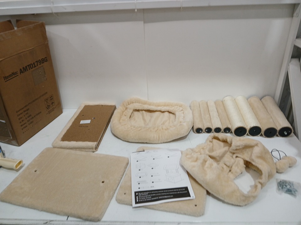 pawz road multi-level Cat Tower with Sisal-Covered Scratching Post, cat condo and large perch - 27.5" - beige (model: amt0179bg)