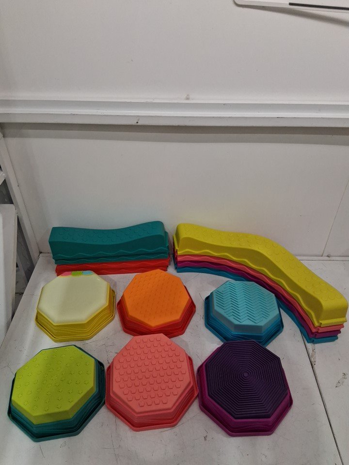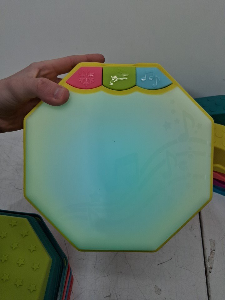 There is a little bit of sand/dirt or possibly crumbs on a couple of the octagonal shaped pieces from previous use. Tested for power.