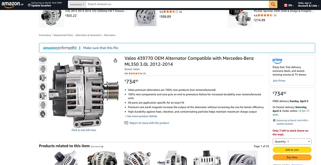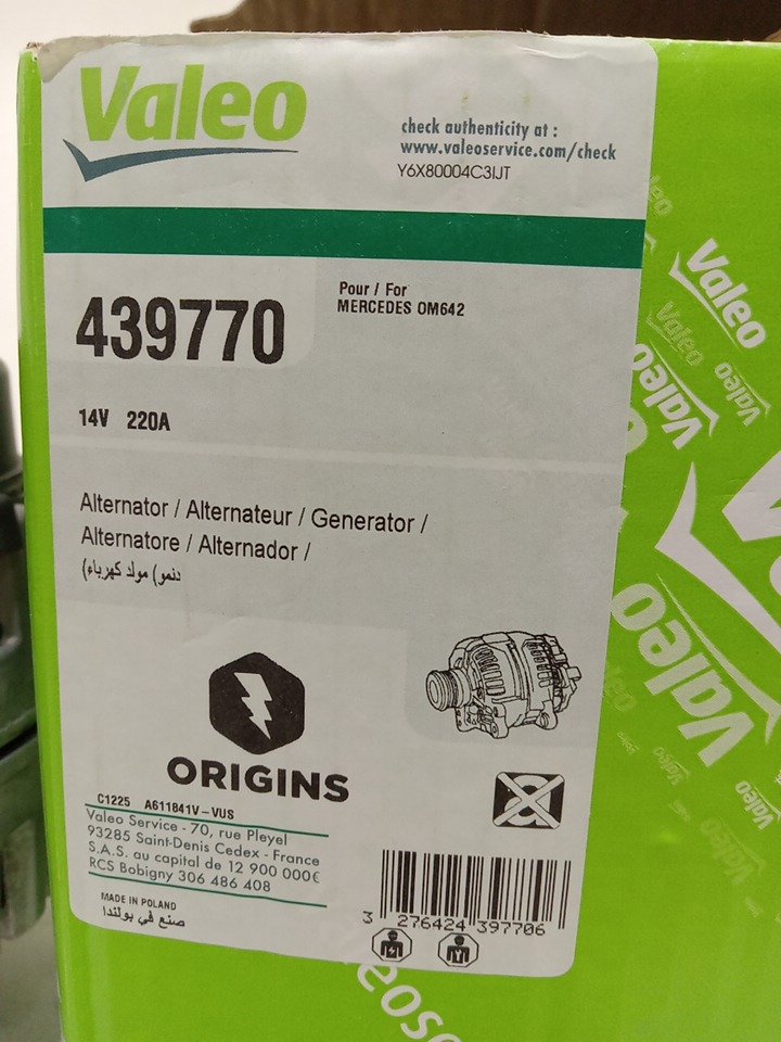 Valeo OEM Alternator Compatible with Mercedes-Benz ML350 3.0L 2012-2014 (model:439770)