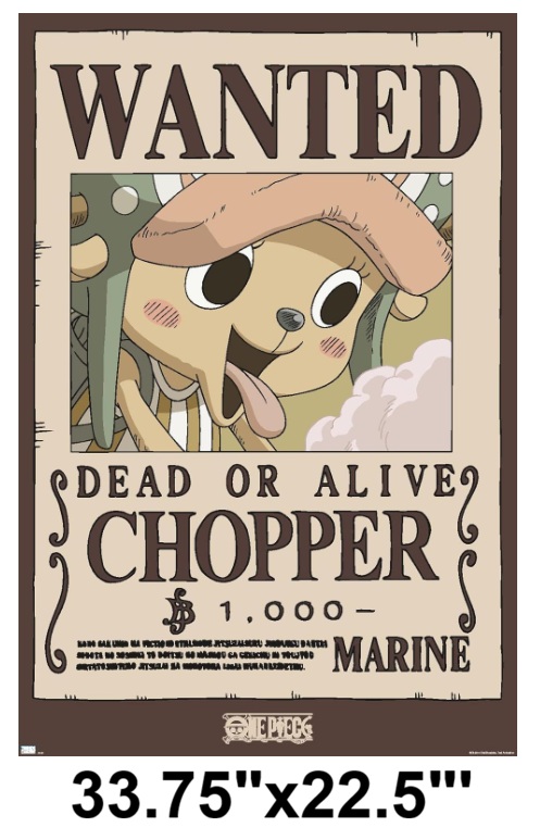 One Piece - Chopper Wanted PREMIUM PAPER Wall Poster - 33.75"X 22.5"