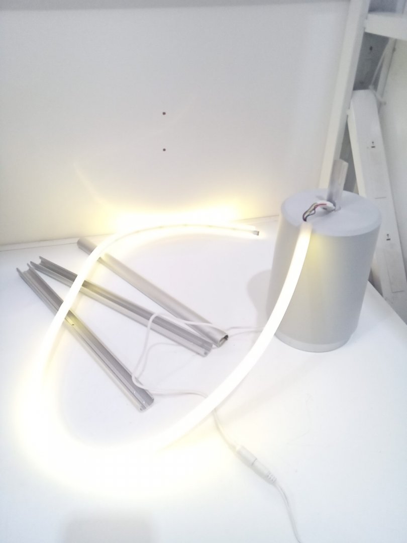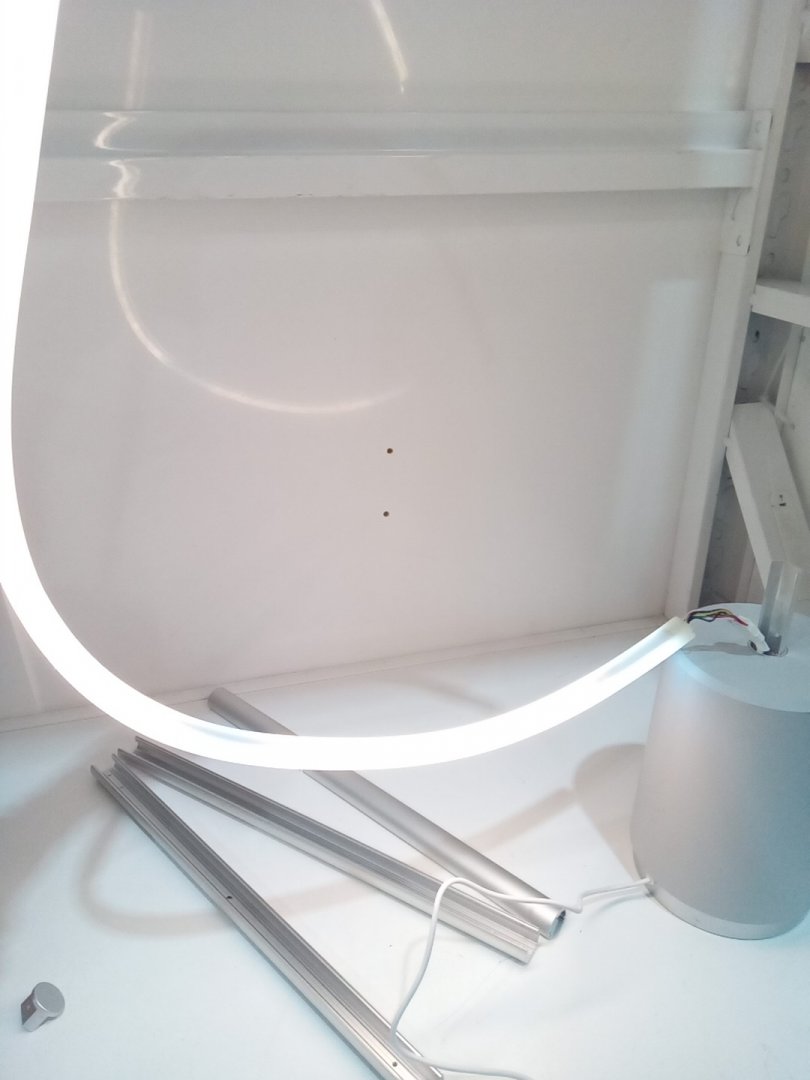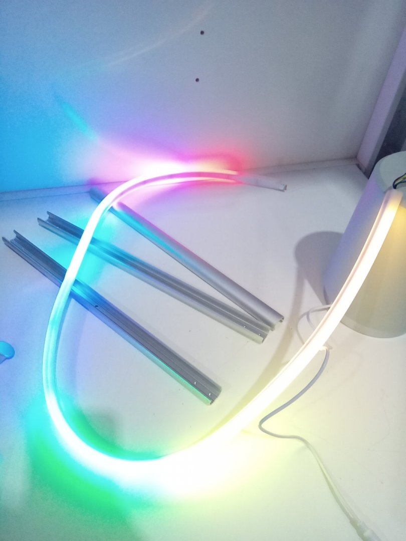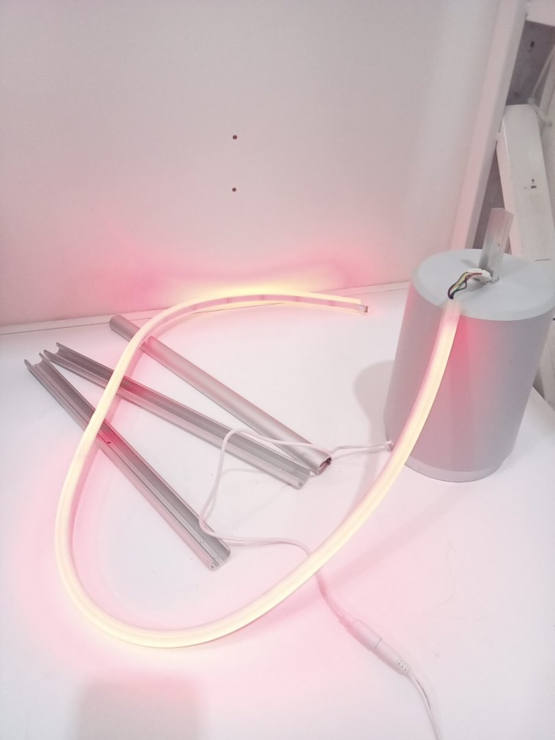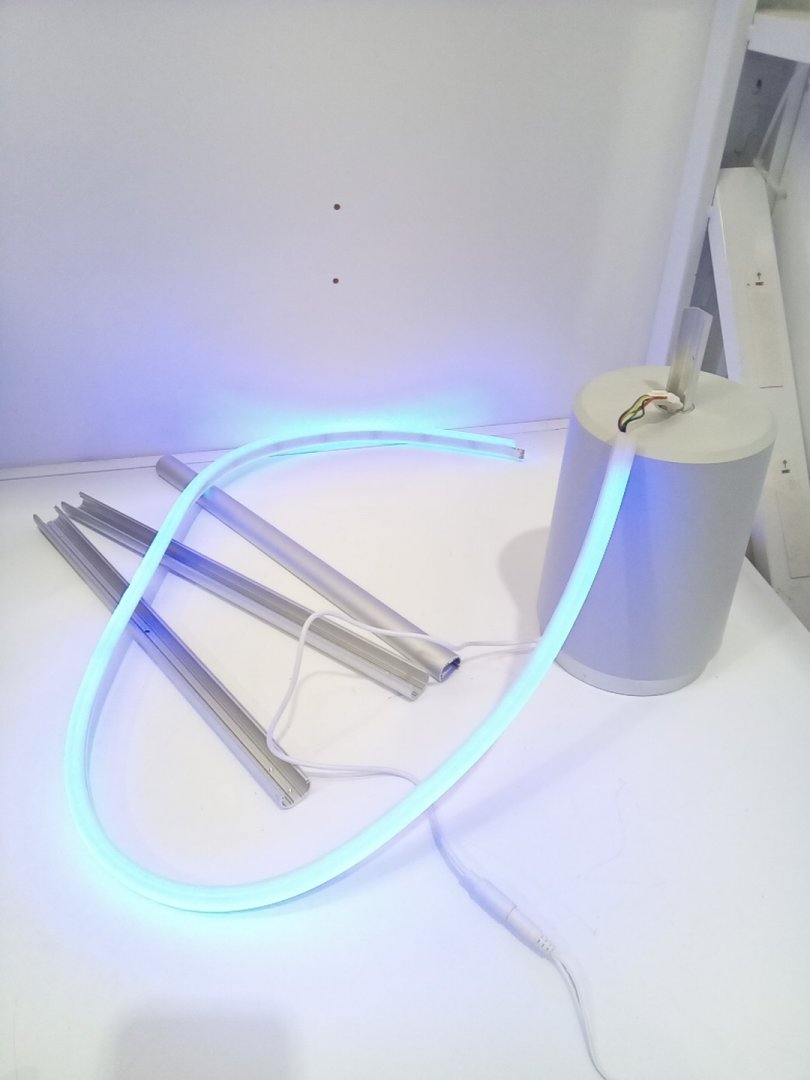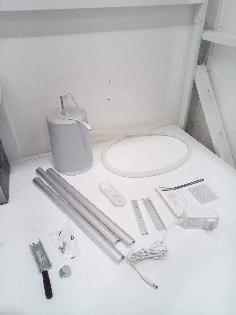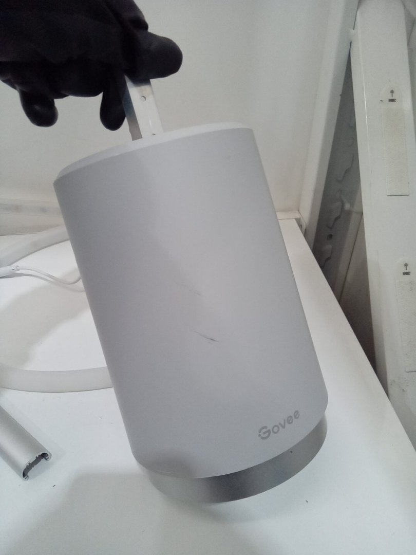Light scuffs and scratches on the base and the rods from previous use. Set is missing one of the screws. When the light mode is on warm/cool, there are 2 parts of the strip that don't completely change colours. Please see photos.