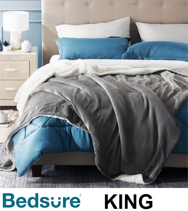 BEDSURE SHERPA/FLEECE PLUSH SOFT THROW BLANKET - KING (108" x 90") - LIGHT GREY