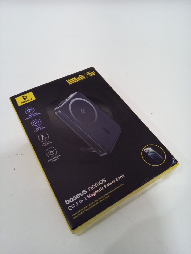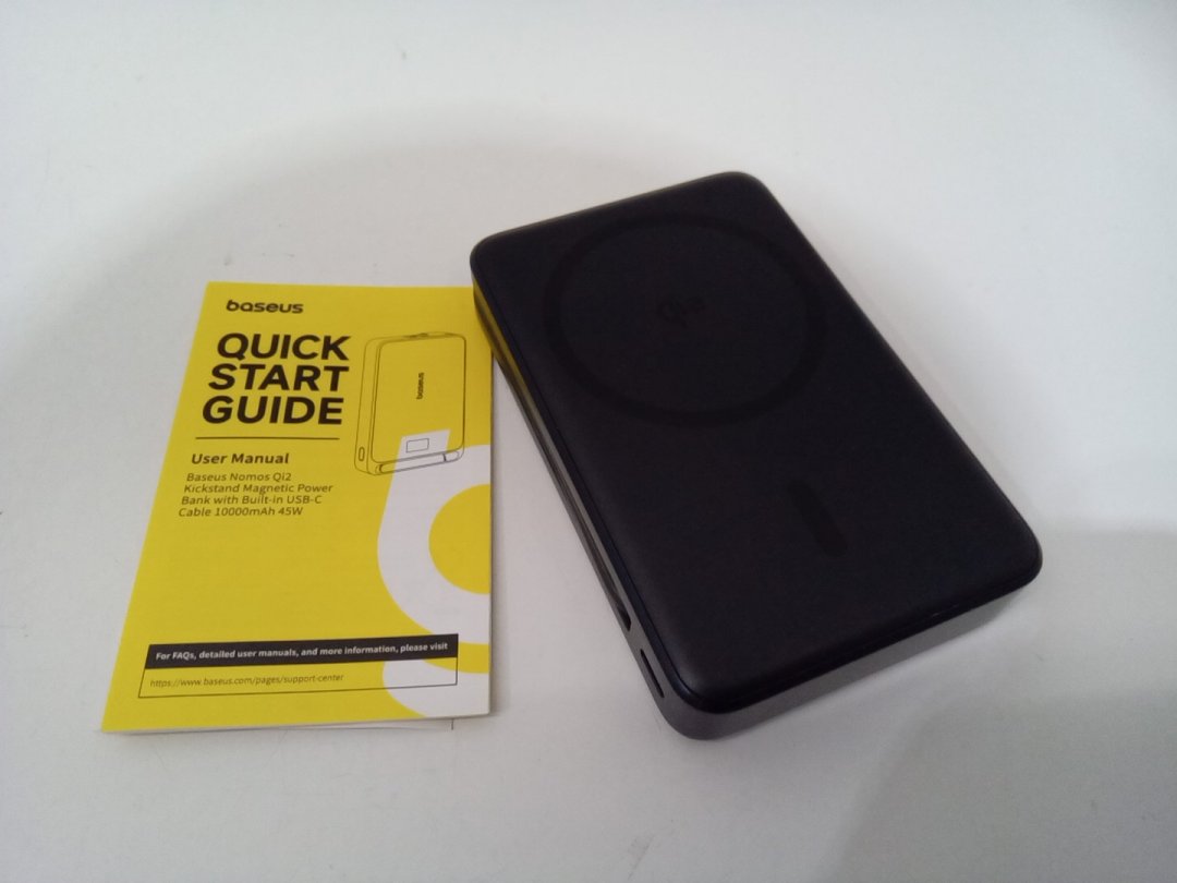 Baseus Nomos Qi2 3-in-1 Magnetic Power Bank - WITH BUILT IN USB-C CABLE AND PHONE STAND - 10000 MAH - 45W - BLACK (MODEL: LFZ108)