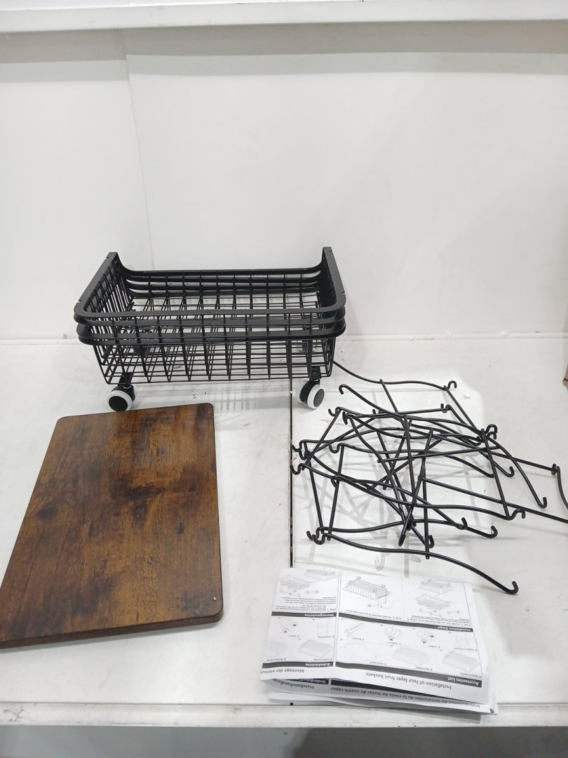 MODERN 4-TIER METAL FRUIT BASKET ROLLING STORAGE STAND - BLACK/RUSTIC BROWN