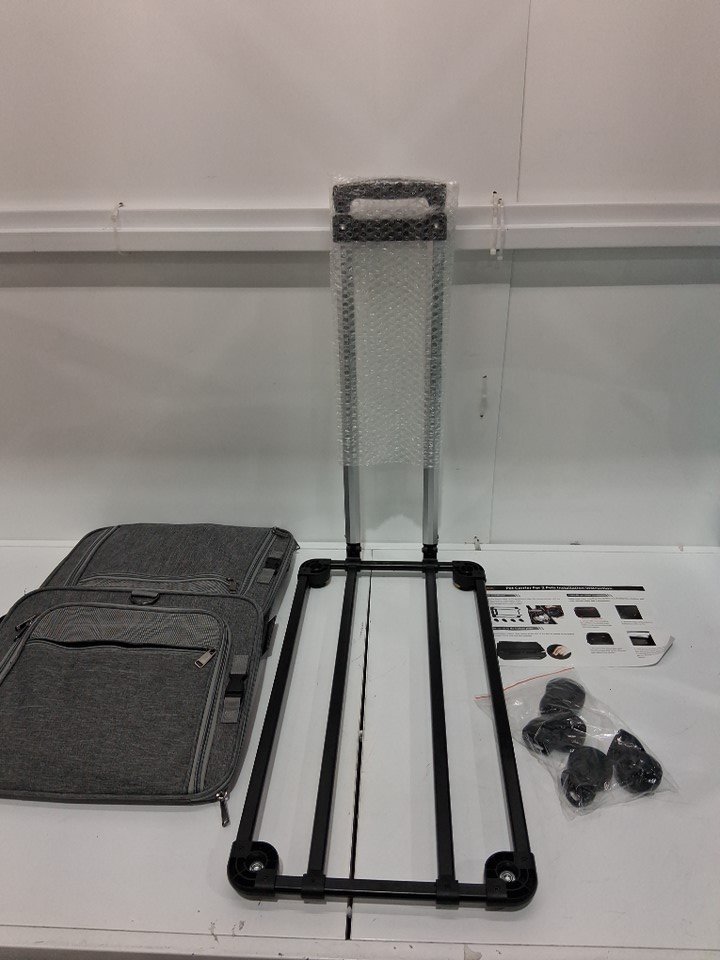 GJEASE Double-Compartment Pet Rolling Carrier with Wheels for 2 Cats Ventilated - 13" x 24" x 14.2" - grey - (model:GJ-DLPCW-01GREY)