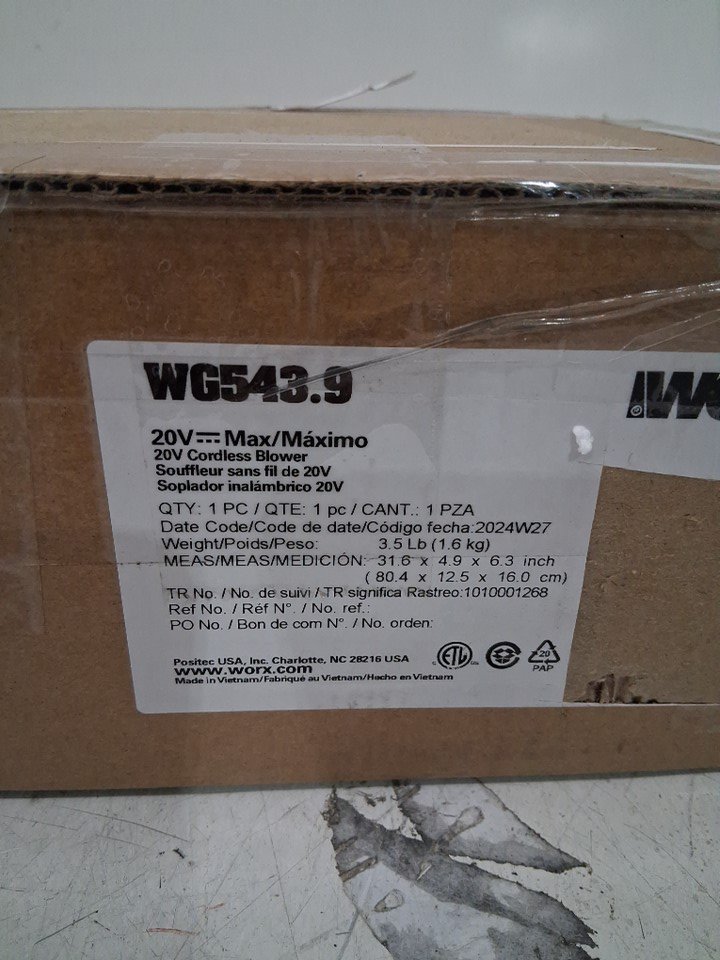WORX 20V LEAFJET CORDLESS LEAF BLOWER WITH BRUSHLESS MOTOR **TOOL ONLY** - BLACK/ORANGE (MODEL: WG543.9)