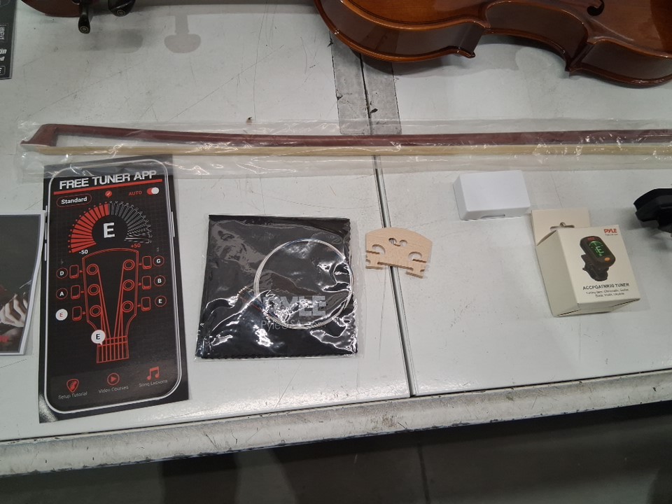 Please note that the strings may be damaged and the bridge is not attached, but it otherwise appears new (see photos)