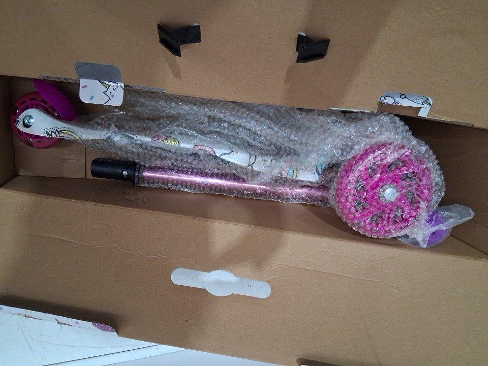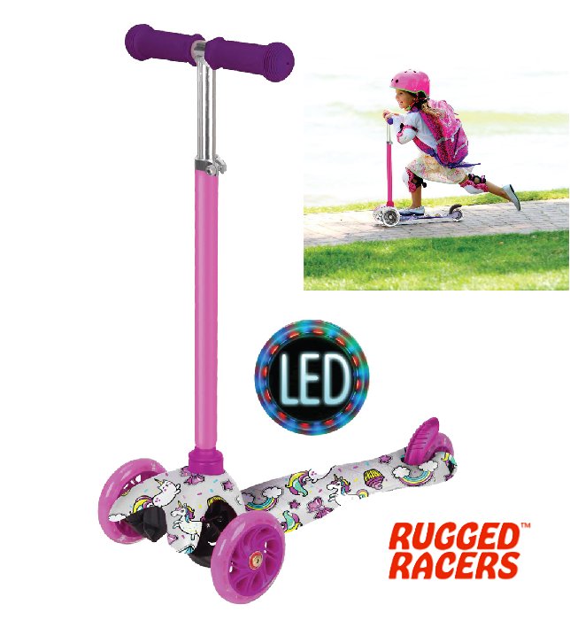 rugged racers mini deluxe 3 Wheel Kick Scooter with Led and Adjustable Height - 3 to 6 years - 150lbs max - Unicorn Pink