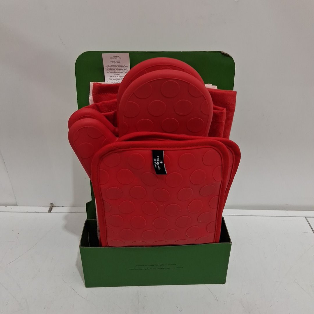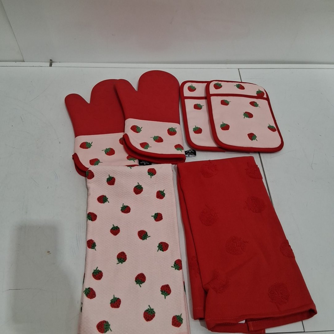 6PC KATE SPADE NEW YORK OVEN MITTS and PotholderS with Non-Slip Silicone SURFACE - PINK/RED STRAWBERRY (MODEL: 2415202)