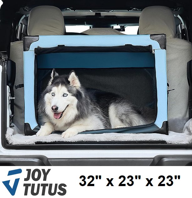 joytutus collapsible portable pet crate kennel for travel, for pets up to 55lbs - 32" - Blue