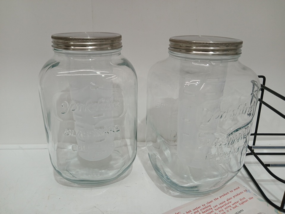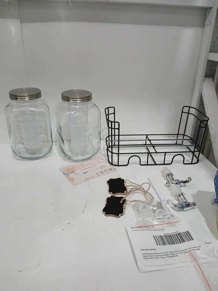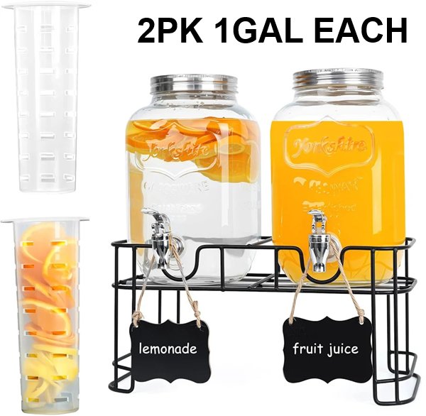 2pk Glass Drink Dispenser with Stand, INFUSER and Lid - 1gal each - clear BLACK
