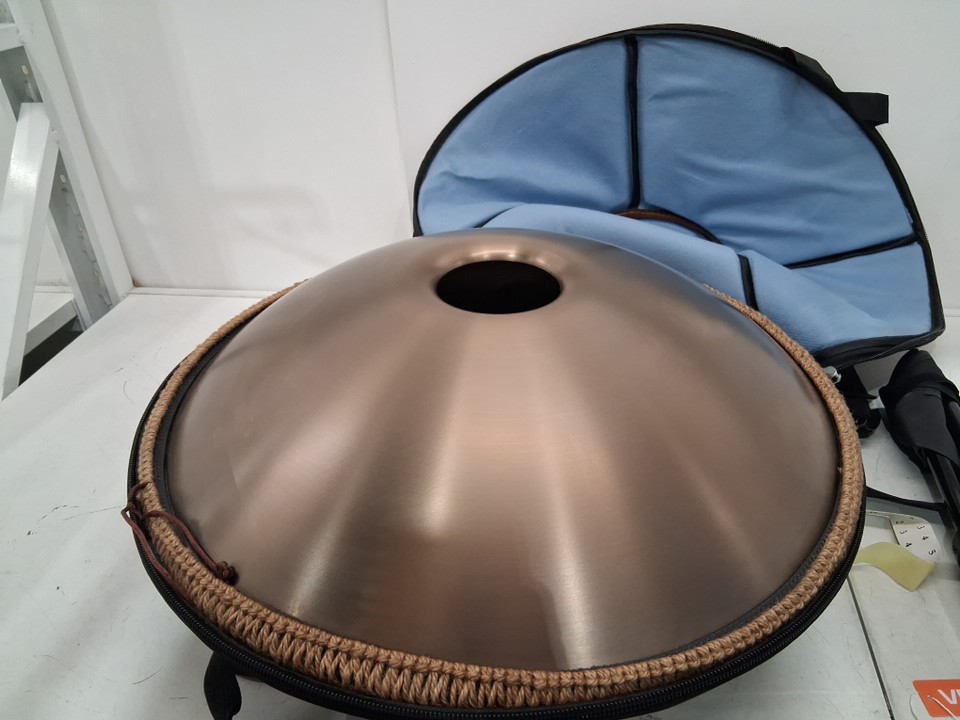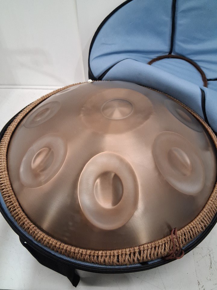 handpan drum with mallets and accessories- 22", 9 notes, d minor, 440HZ- gold/brown (model: golden-9 tone sound-d major)