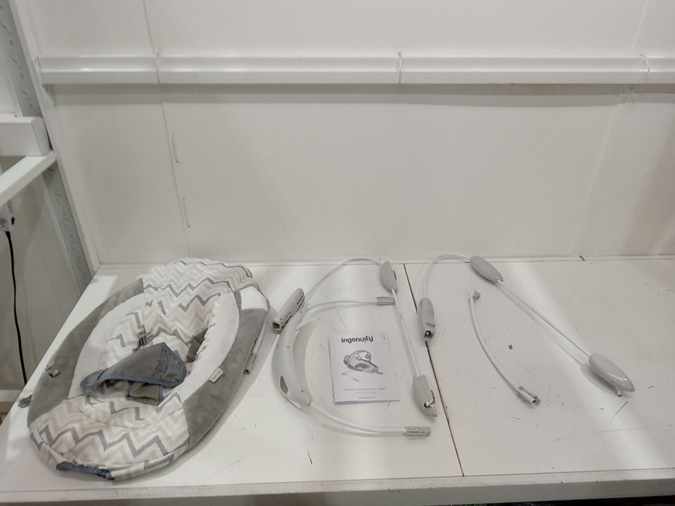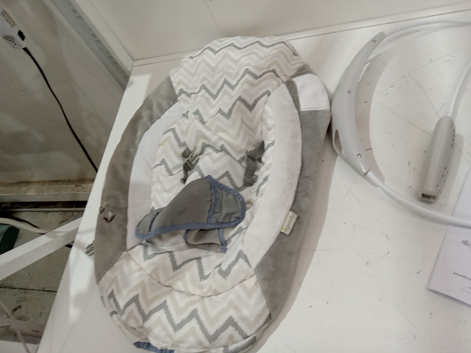 the motorized bouncer and the mobile are missing. there are some marks on the frame of the seat