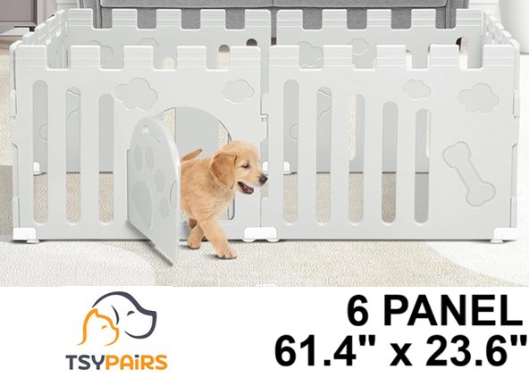 6 panel tsypairs small playpen for pets/dogs - 61.4" x 23.6" - white (model: T-DP003)