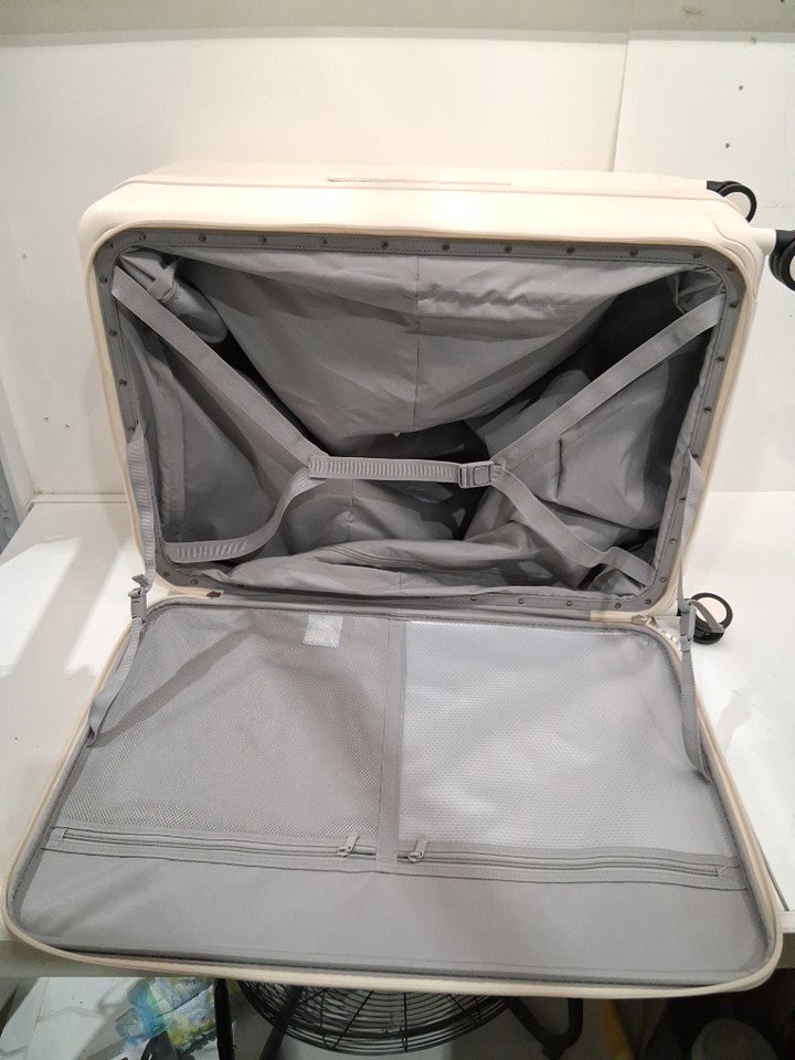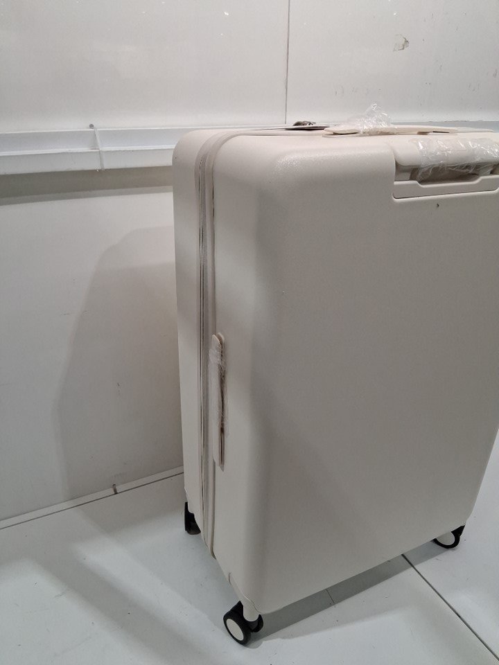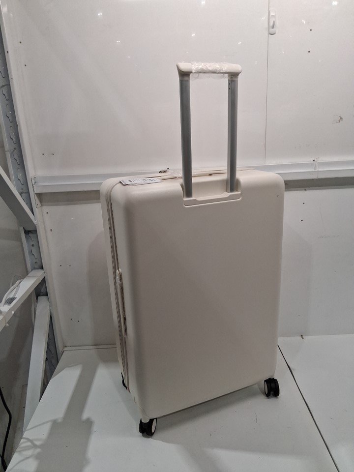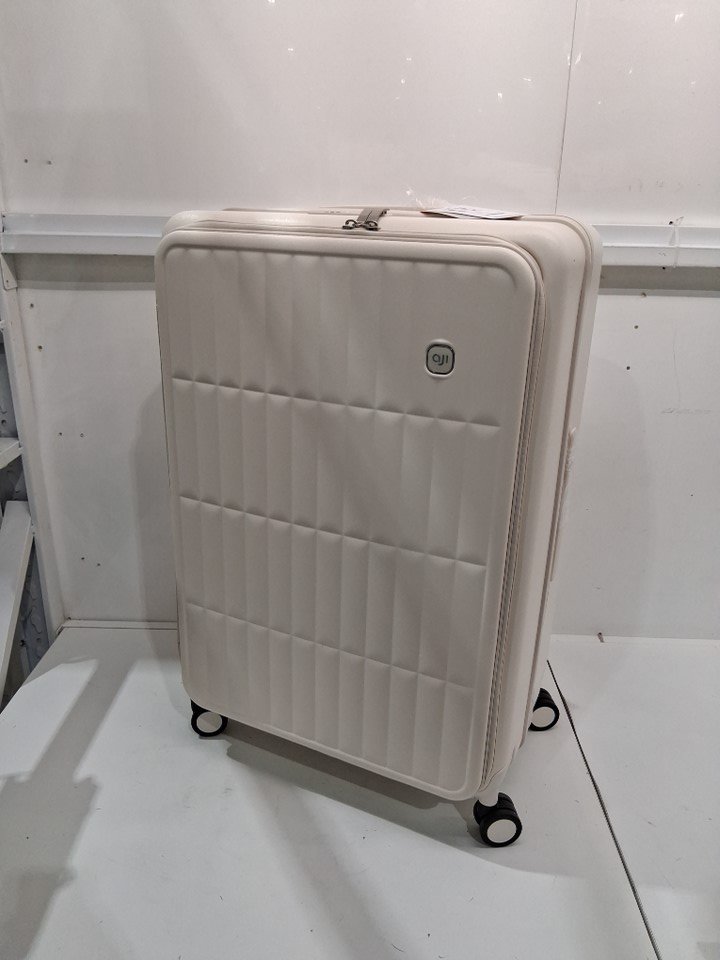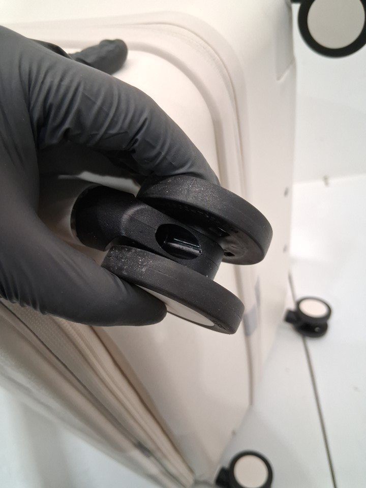 Light dirt on the wheels, wipes right off, suitcase is still new with tags