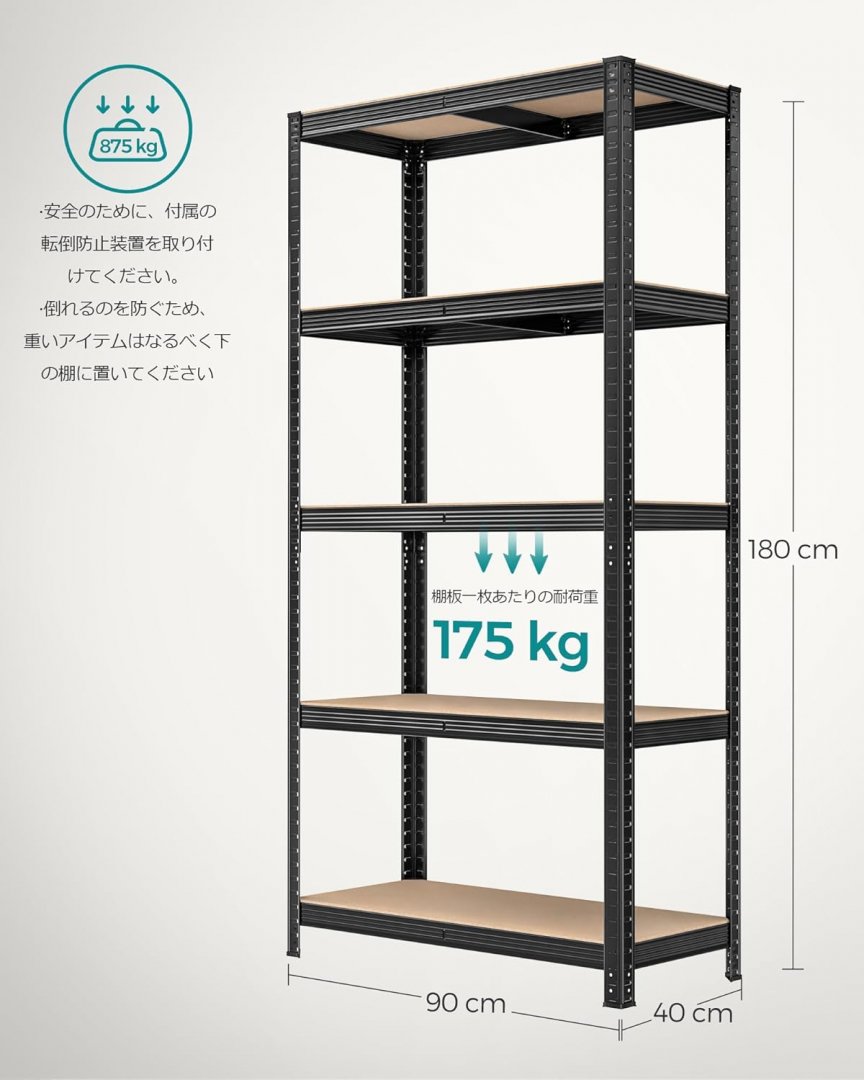 SONGMICS ADJUSTABLE Steel 5-TIER Rack - BLACK/WOOD (MODEL: glr040bz03)