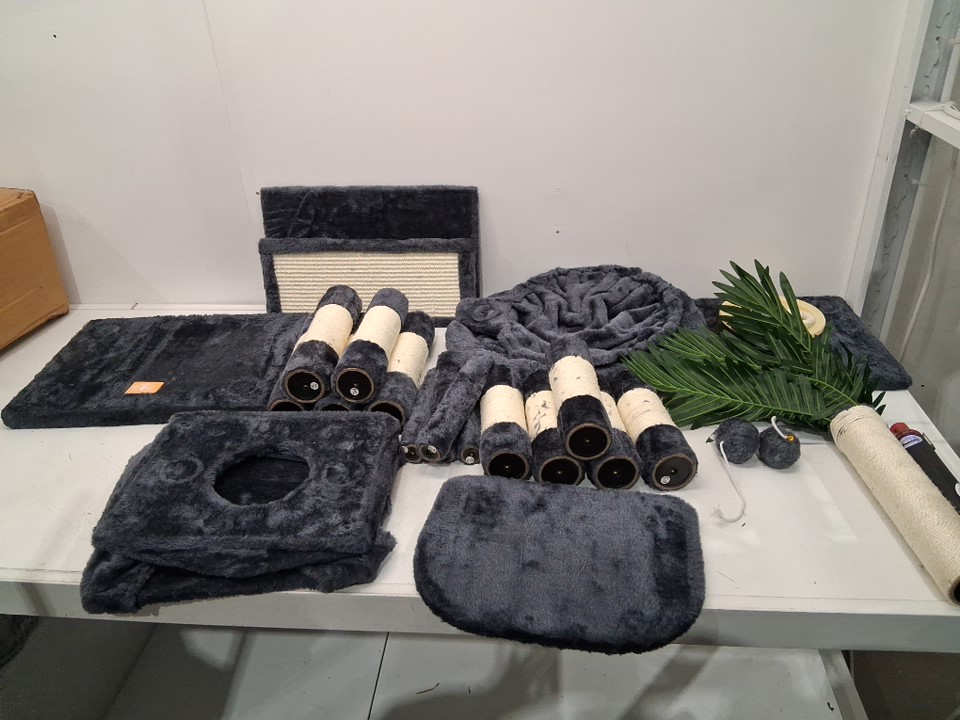 Heybly Cat Tree with Perches, Basket, Leaf, Feeding Bowl - Smoky Gray - (model: HCT015G)