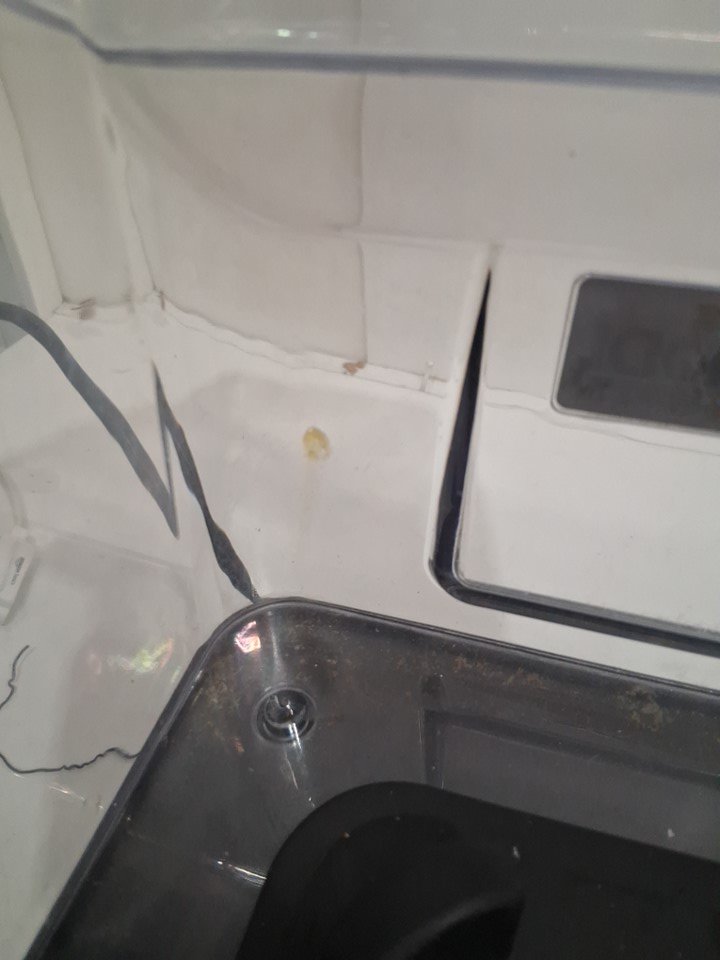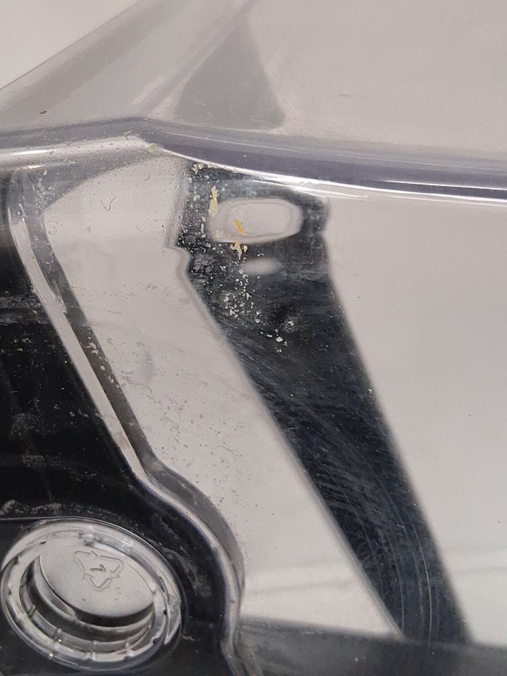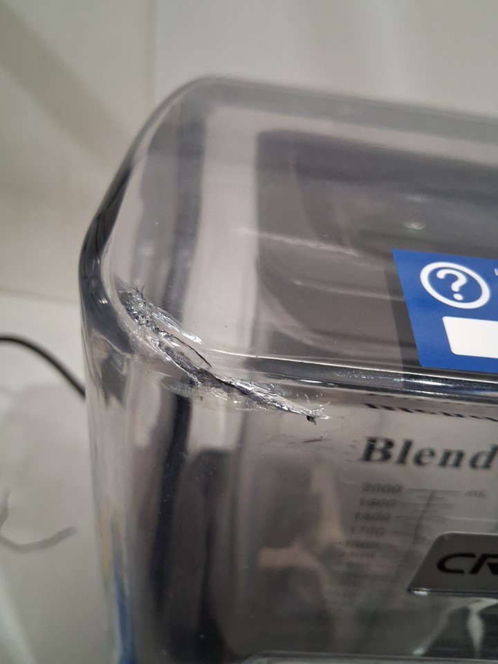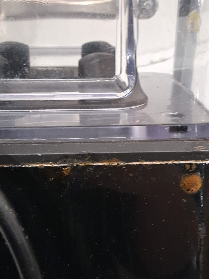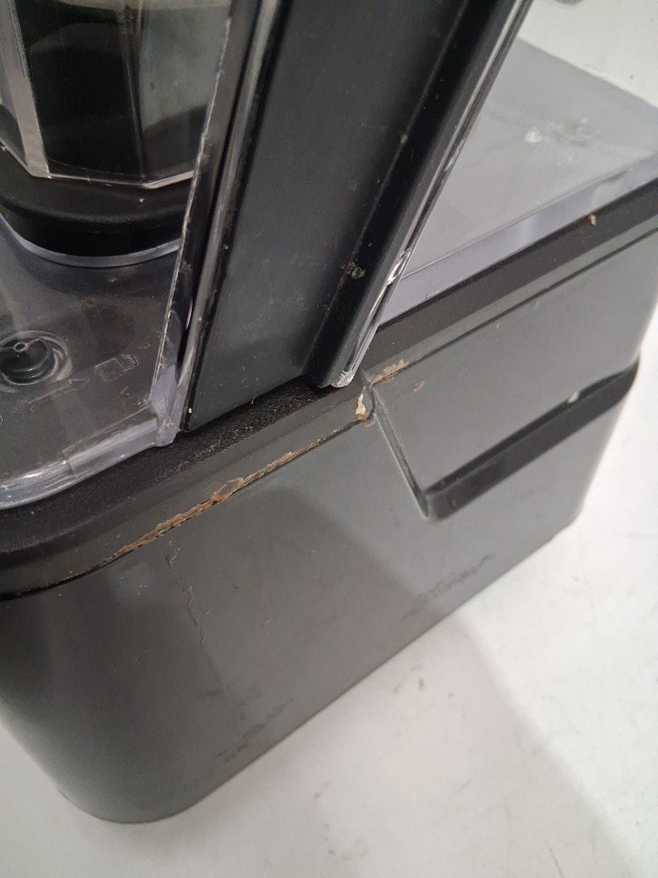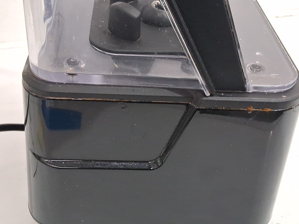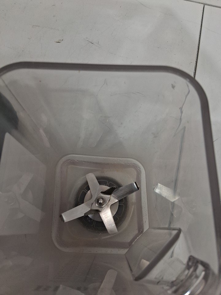 item tested for power there is residue in and around the item and it also seems to be missing the clear plastic piece that goes in the lid (see photos)