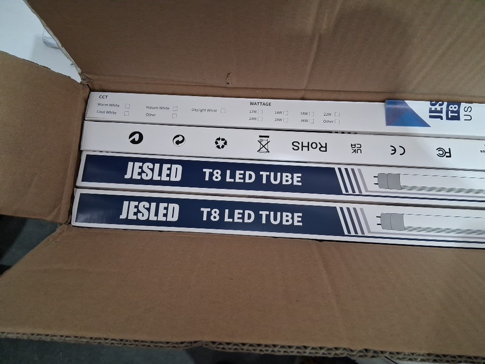 12PK JESLED T8 LED TUBE LIGHT BULBS - 4FT - 24W - 6000K-6500K - clear
