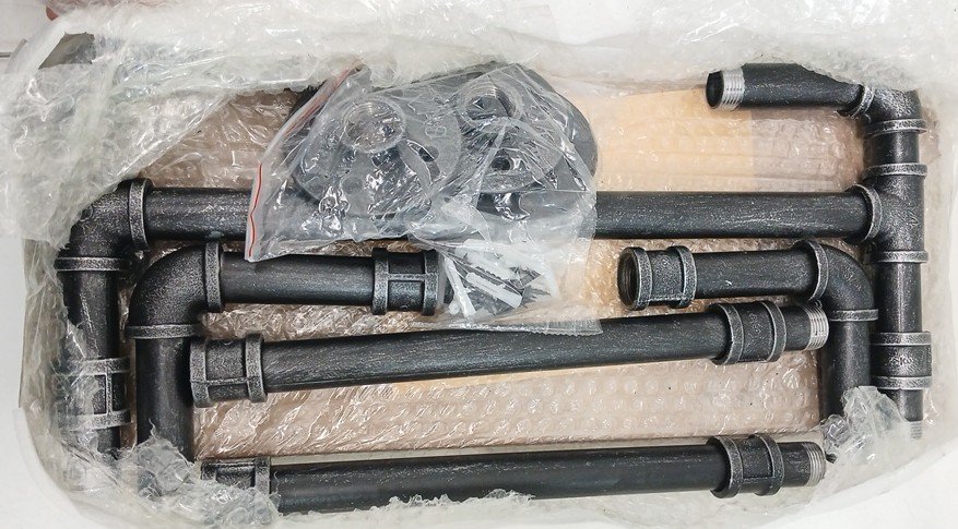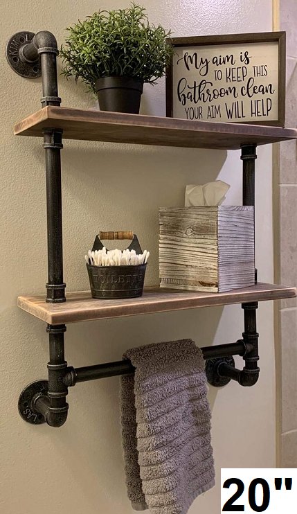 Industrial Rustic Wood Pipe Bathroom Shelves with Towel Bar - 20" - Brown/Black