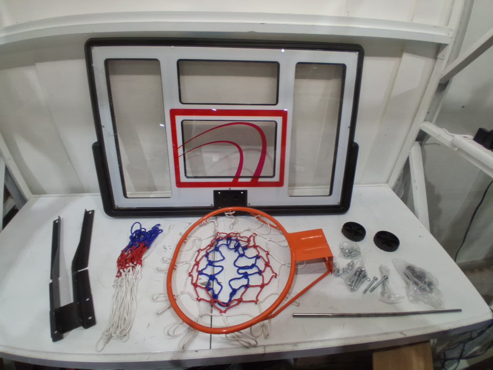 Ware including scuff marks to base and backboard as well as damage to wheel (See photos).