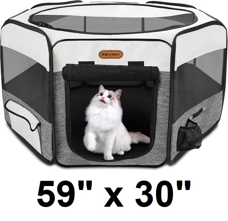 seiyierr PORTABLE folding pet PLAYPEN - 59" x 30" - grey/white (MODEL: DXPP015-XL)