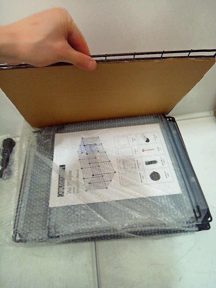 PAWZ ROAD METAL PET PLAYPEN FENCE WITH DOOR - 12" x 16" PER PANEL - BLACK (MODEL: AJ11-ABL0037BK-1)