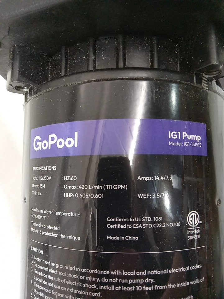 GoPool IG1 high power inground pool pump - 120v - 1.5hp - black ( model: ‎IG1-15151S )