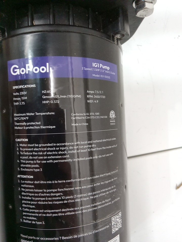 GoPool IG1 high power inground pool pump - 120v - 1.5hp - black ( model: ‎IG1-15151S )