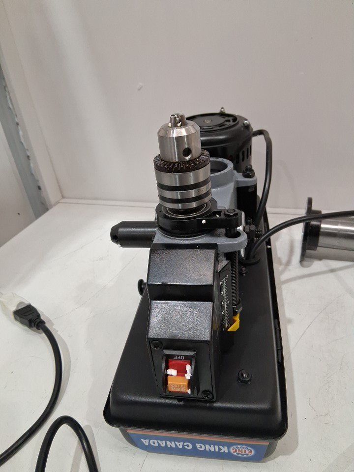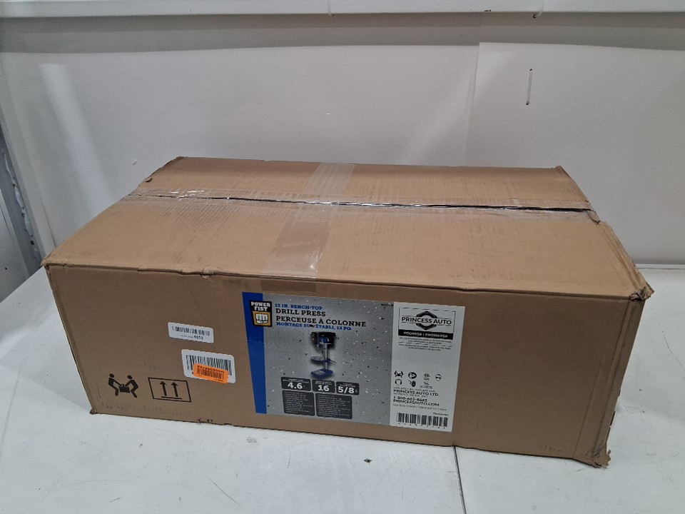 Item was packaged in a 15" drill press box, however item is the 8" drill press (See photos). Tested for power.