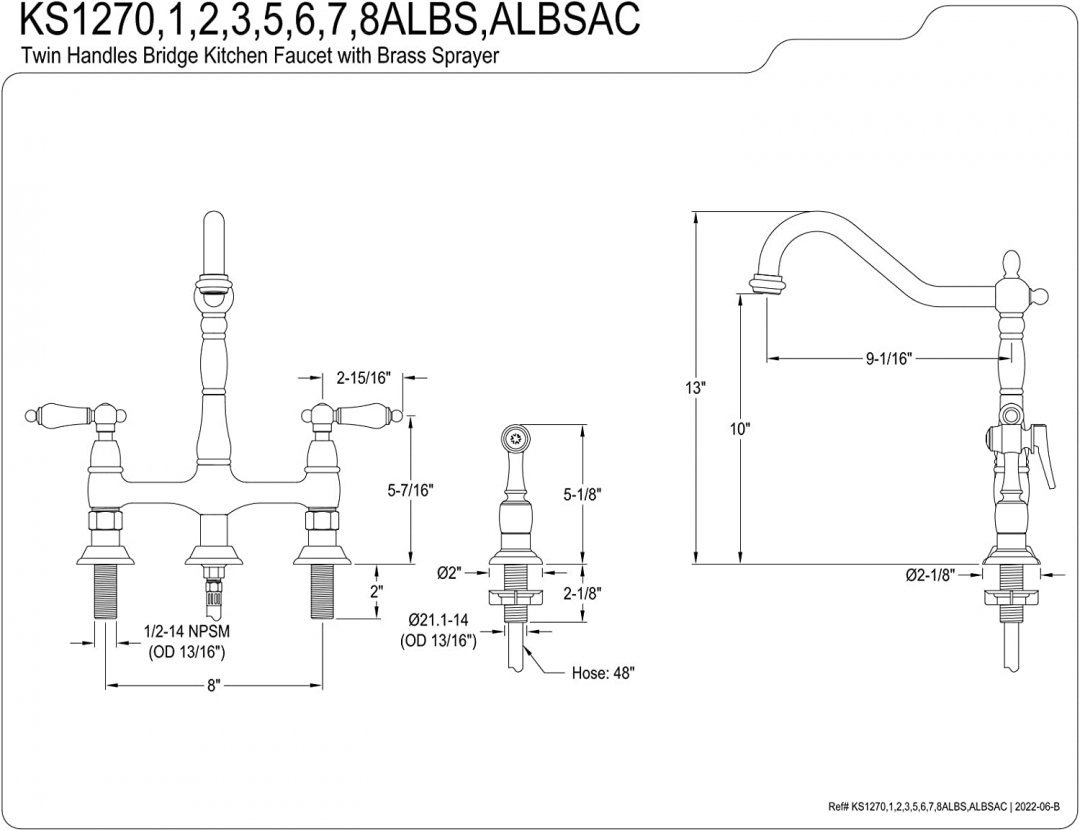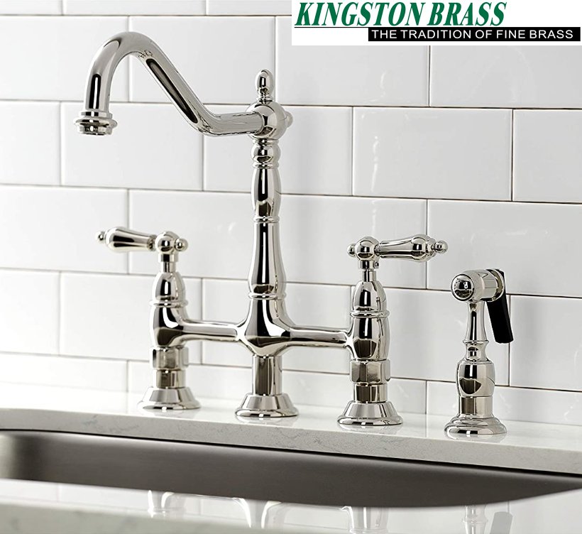 Kingston Brass Heritage 8" Kitchen Faucet with Brass Sprayer, Polished Nickel - (Model: KS1276ALBS)