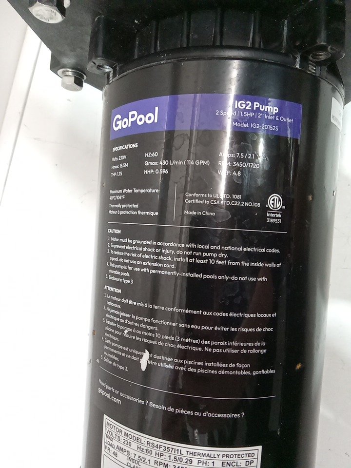 GoPool IG2 high power inground pool pump - 115v - 1.5hp - black ( model: ‎IG2-2015s)